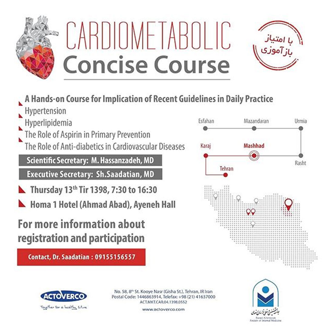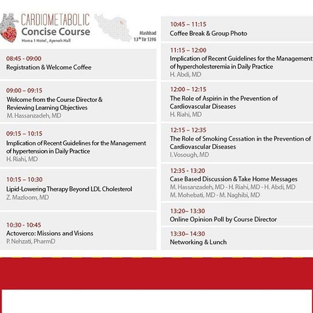 پنج شنبه سیزدهم تیرماه و یک دوره آموزشی کوتاه کاردیومتابولیک دیگر درباره پیشگیری از بیماریهای قلبی عروقی فشارخون بالا، اختلالات کلسترول، اختلالات تریگلیسرید، آسپیرین و سیگار