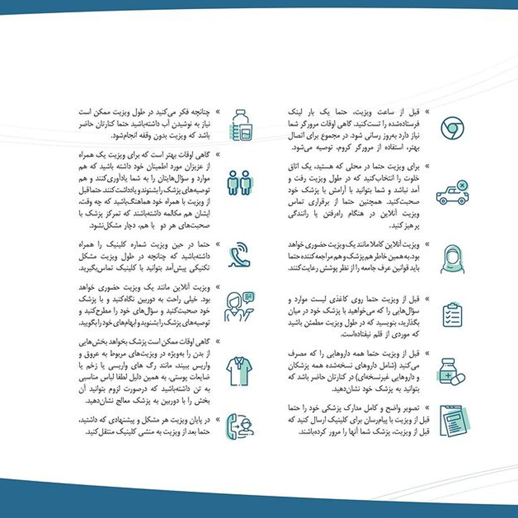 در بسیاری موارد هم که ویزیتها برای بازبینی آزمایش ها و عکسهای مختلف پزشکی است و تنظیم داروها و مشاورههای مختلف که بهصورت آنلاین قابل انجام است