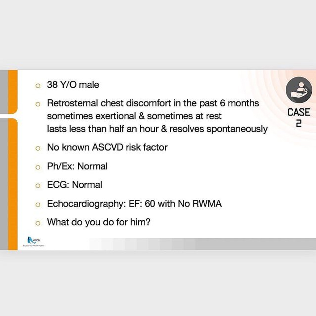 پنج شنبه، هفدهم تیرماه ساعت ده تا دوازده و نیم سه ارائه کوتاه و گفتگو درباره داروهای ضدآنژین و با تمرکز بر رانولازین و سپس نود دقیقه گفتگو بر اساس کیس درباره تشخیص تا درمان و پیگیری سندروم مزمن کرونری در ادامه صفحات این پست، هشت کیسی که درباره آنها بحث خواهد شد نیز آمدهاست