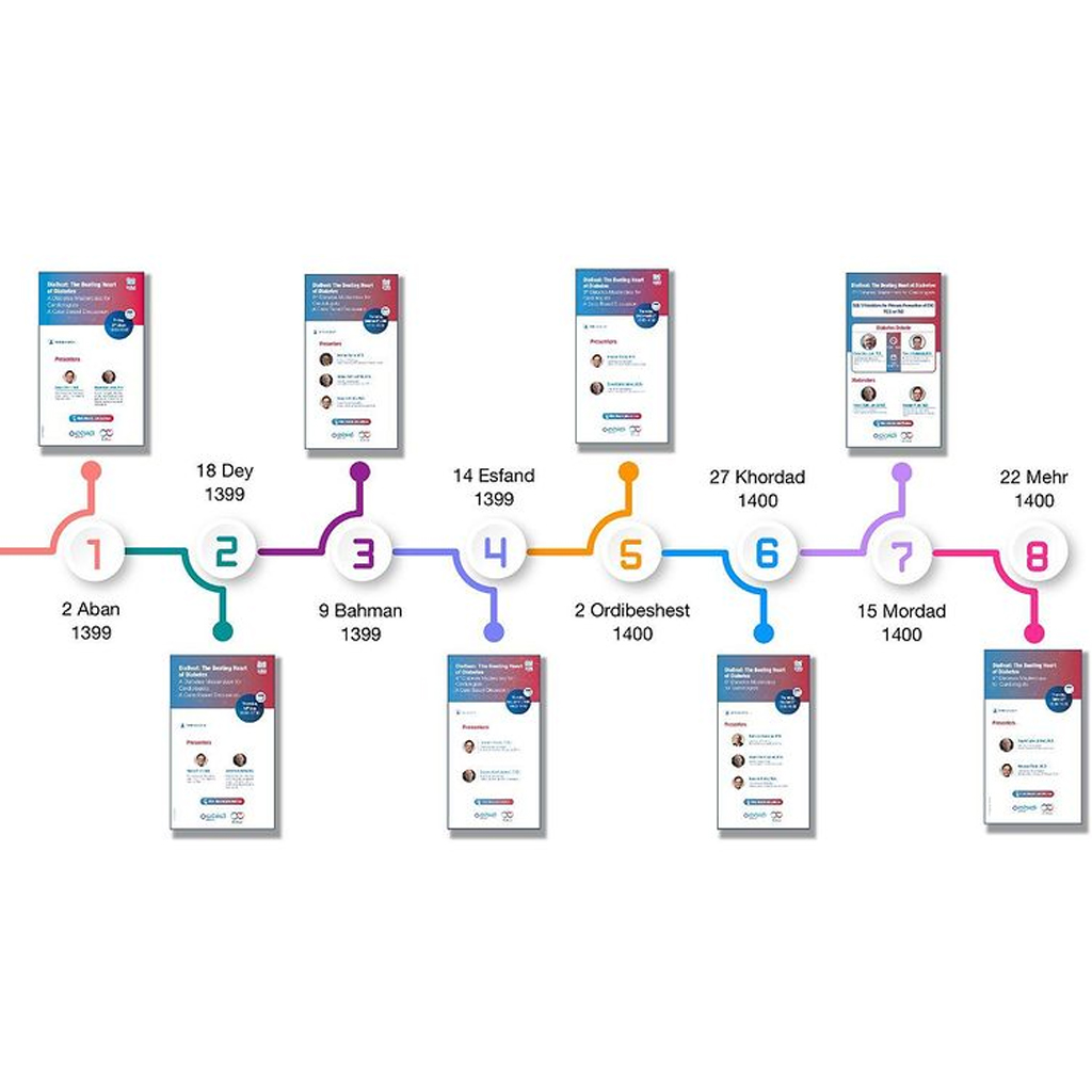 هشتمین و آخرین جلسه از سری اول دایابیت مسترکلاسهای دیابت برای همکاران گروه قلب پنجشنبه بیست و دوم مهرماه ساعت پانزده لینک برنامه در صفحه دیلی کاردیولوژی در دسترس است